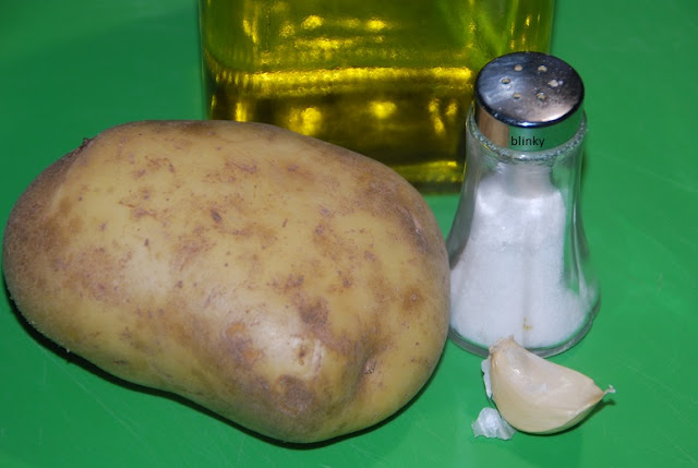 Pelamos la patata la chascamos y la ponemos a cocer en agua con sal .